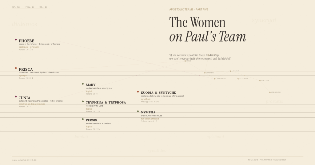 Paul wasn’t a modern egalitarian operating with twenty-first-century categories. He was a first-century Jewish apostle operating in a patriarchal culture. And yet his teams were more gender-diverse than many church leadership teams today. That should give us pause.