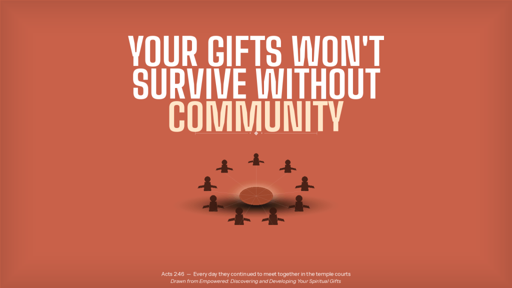 Spiritual gifts do not thrive in private. They were never designed to. They are planted in you for the sake of others, and they grow through the friction and grace and shared life of belonging to a community that is trying, together, to embody the kingdom of God.
