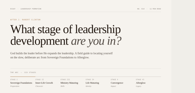 “Most leadership content tells you what to do. J. Robert Clinton’s research will tell you where you are — and why that matters more than you think.”